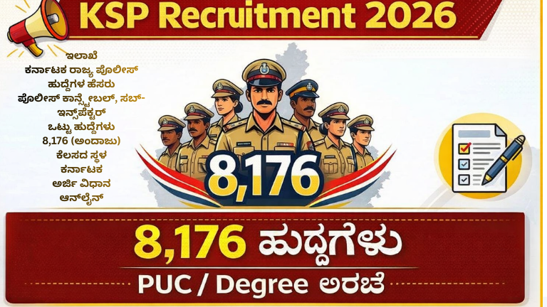 KSP Recruitment 2026: ಕರ್ನಾಟಕ ಪೊಲೀಸ್ ಇಲಾಖೆಯಲ್ಲಿ 8,000+ ಹುದ್ದೆಗಳ ನೇಮಕಾತಿ – ಅರ್ಹತೆ, ವಯೋಮಿತಿ ಮತ್ತು ಅರ್ಜಿ ವಿವರಗಳು