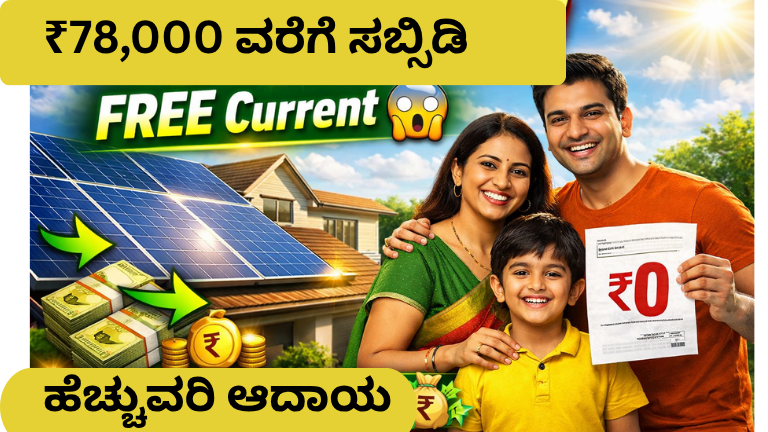 ✍️ PM Surya Ghar ಯೋಜನೆ 2026: ₹78,000 ಸಬ್ಸಿಡಿ + ಉಚಿತ ವಿದ್ಯುತ್! ಮನೆಗೆ ಸೋಲಾರ್ ಹಾಕಿದ್ರೆ ಬಿಲ್ Zero ಇಂದಿನ ದಿನಗಳಲ್ಲಿ ವಿದ್ಯುತ್ ಬಿಲ್...